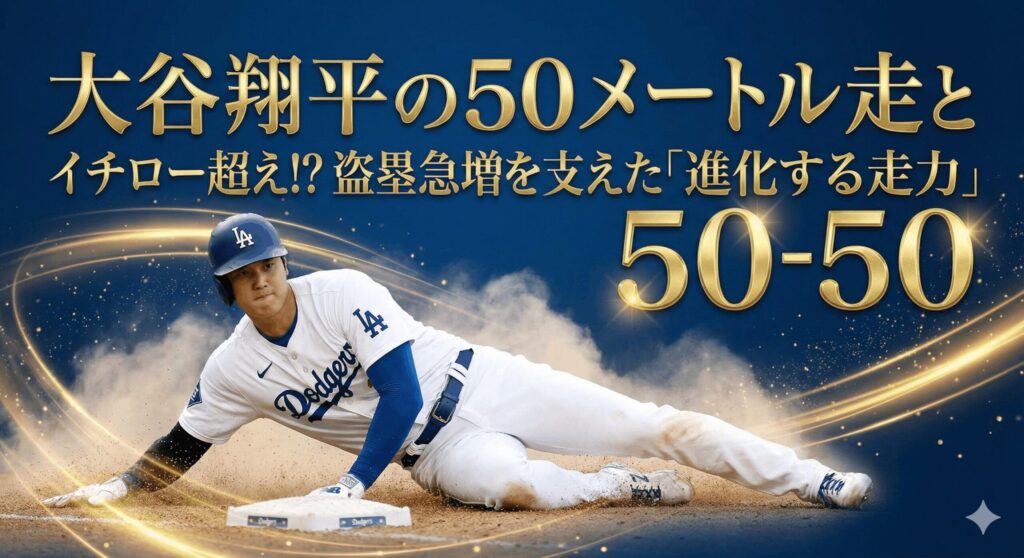 2024年シーズン、大谷選手は「50本塁打・50盗塁(50-50)」という歴史的な記録を樹立しました。ここで注目したいのが、スプリントスピード自体が劇的に速くなったわけではないのに、盗塁数が激増した点です。