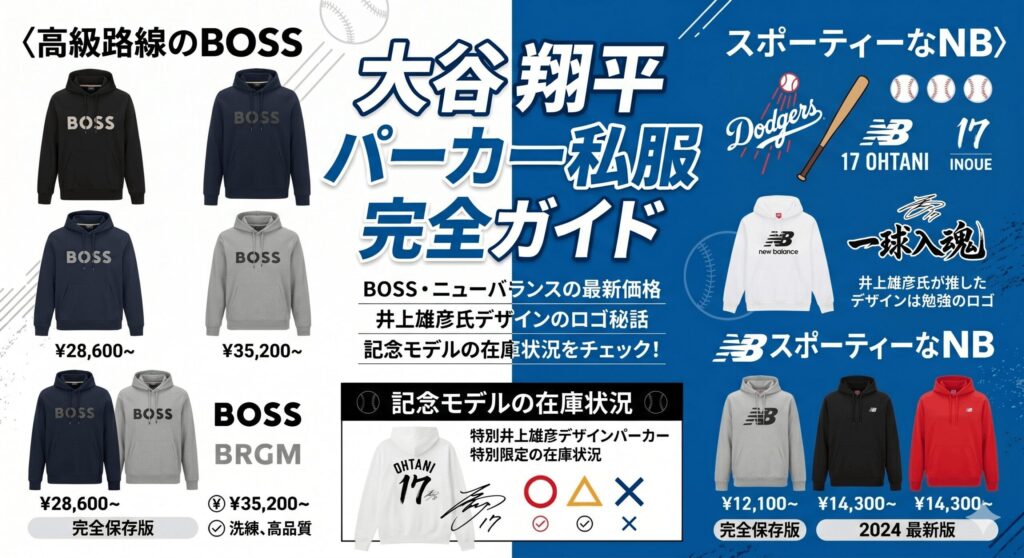 特に2024年のMVP記念フーディなどは、DH専任選手として初の受賞という歴史的重みがあり、コレクターズアイテムとしての側面が非常に強まっています。流通価格はモデルによって異なりますが、8,500円から2万円前後の間で推移しており、限定生産という性質上、時間が経つほど入手が困難になります。この「今しか買えない」という飢餓感が、検索ボリュームを常に押し上げている要因です。