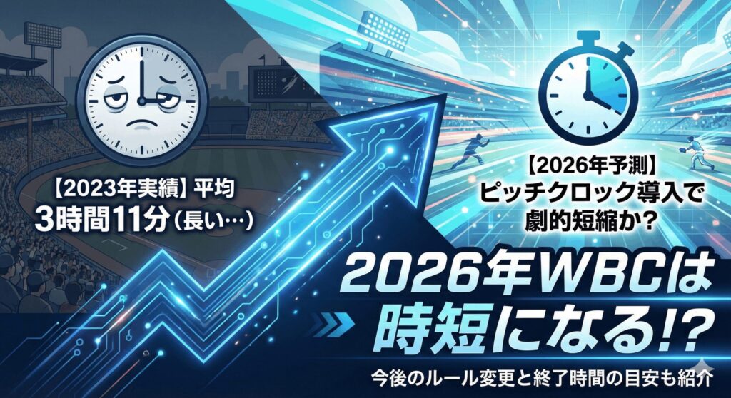 次回の第6回大会(2026年)に向けて、ファンの関心はルールの変化と試合時間の短縮に向いています。ここでは、観戦の際に役立つ終了時間の予測方法や、未来のWBCがどう変わるのかを予測してみましょう。